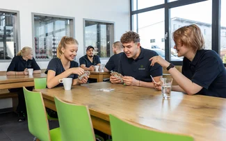 Mega die Stimmung! Bei uns bist du mittendrin statt nur dabei. Vom ersten Tag an sind wir per Du – vom Azubi bis zum Chef. Alle helfen allen und gemeinsam bringen wir richtig was auf die Beine. Ob am Kaffeetisch, bei einer spontanen Kicker-Runde oder beim lockeren Feierabend-Quatschen im Hof – bei uns gibt es immer was zu lachen, zu plaudern und zu erleben!